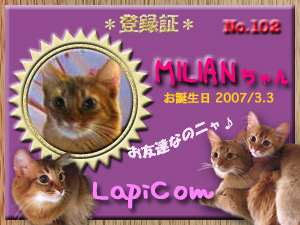 ミリアンちゃんのお友達登録、ありがと〜ですヾ(=^▽^=)ノ